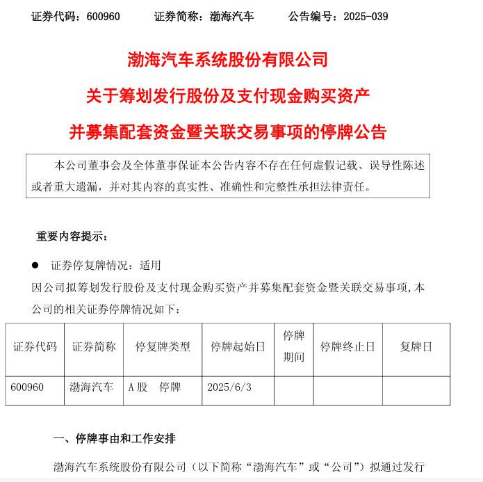 红星资本局6月3日消息在线配资公司,5月30日晚间,渤海汽车(600960.SH)公告称,公司拟筹划发行股份及支付现金购买资产并募集配套资金暨关联交易事项,公司股票自6月3日开市起停牌,预计停牌时间不超过10个交易日。